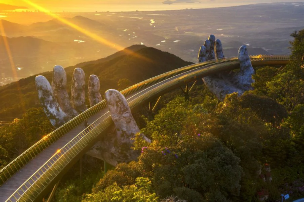 Cầu Vàng rực rỡ dưới nắng ban mai – biểu tượng du lịch thế giới không thể bỏ lỡ trong hành trình khám phá Đà Nẵng.