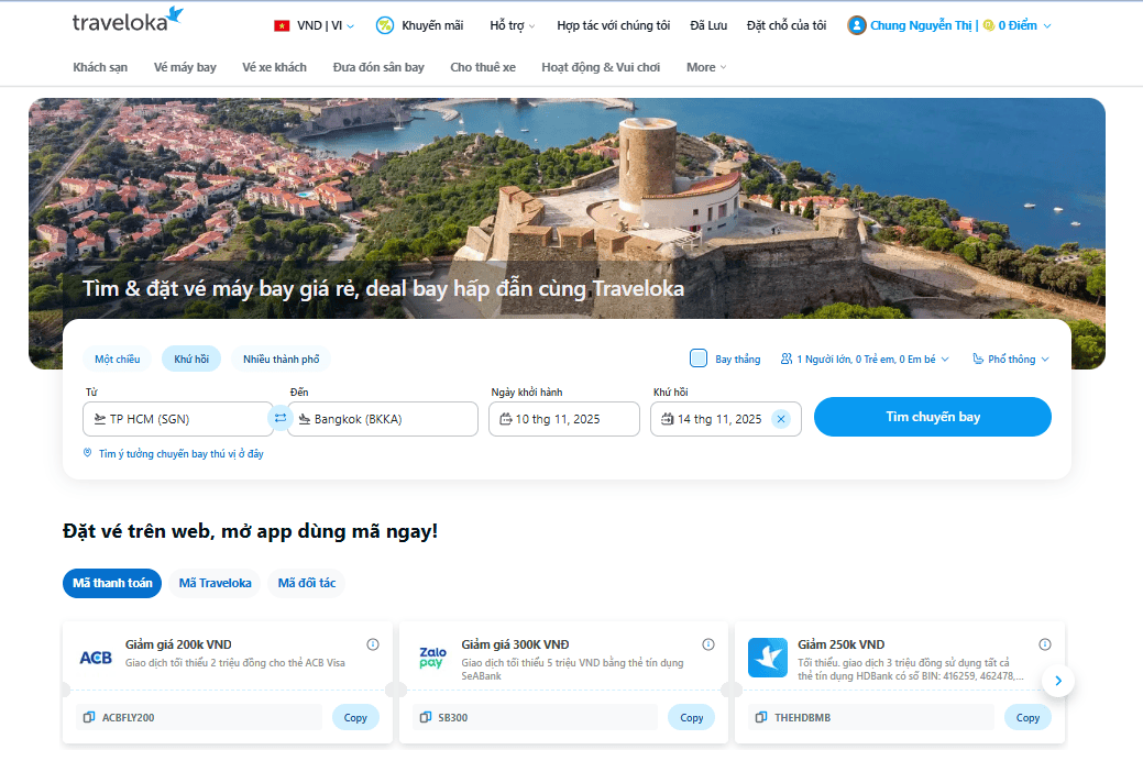 Bạn có thể đặt vé máy bay VietJet online trực tiếp qua các nền tảng uy tín như Traveloka để dễ dàng so sánh giá, chọn thời gian phù hợp và thanh toán nhanh chóng.